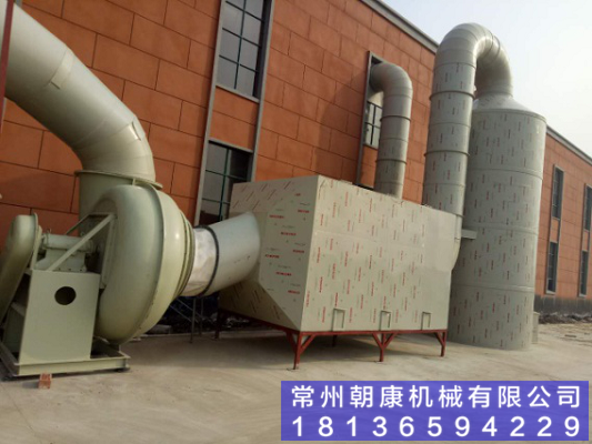12、三相多介質催化氧化工藝  反應塔內裝填特制的固態復合填料,填料內部復配多介質催化劑。當惡臭氣體在引風機的作用下穿過填料層,與通過特制噴嘴呈發散霧狀噴出的液相復配氧化劑在固相填料表面充分接觸,并在多介質催化劑的催化作用下,惡臭氣體中的污染因子被充分分解。適用范圍廣,尤其適用于處理大氣量、中高濃度的廢氣,對疏水性污染物質有很好的去除率。占地小,投資低, 運行成本低;管理方便,即開即用;耐沖擊負荷,不易污染物濃度及溫度變化影響需消耗一定量的藥劑。