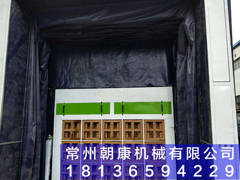 噴漆時(shí)送風(fēng)機(jī)、排風(fēng)機(jī)同時(shí)啟動(dòng)(若冬季需要提高操作環(huán)境的溫度,加熱系統(tǒng)也同時(shí)啟動(dòng)),室外新鮮空氣由進(jìn)風(fēng)口經(jīng)過(guò)進(jìn)風(fēng)過(guò)濾器進(jìn)入加熱送風(fēng)機(jī)組,再由送風(fēng)機(jī)將處理后的氣流送入到噴漆間頂部的靜壓室,靜壓室底部的過(guò)濾棉對(duì)氣流進(jìn)行均壓過(guò)濾后呈層流方式進(jìn)入到噴漆間內(nèi),在工件和操作工人周?chē)纬捎缮隙碌奈L(fēng)氣流,使噴漆時(shí)產(chǎn)生的剩余漆霧隨氣流而下,不會(huì)向四周彌散,以保護(hù)操作者勞動(dòng)安全。室內(nèi)空載平均風(fēng)速為0.3~0.5米/秒。在有序氣流的作用下,含漆霧空氣穿過(guò)輕型格柵進(jìn)入排風(fēng)地溝,大部分漆霧在繞過(guò)地溝格柵下面的折流板時(shí)因氣流突然折射的原因漆霧顆粒隨慣性作用而沉降在折流板上,剩余的細(xì)小漆霧顆粒隨氣流再次經(jīng)過(guò)折流板下面的漆霧過(guò)濾棉對(duì)剩余漆霧顆粒進(jìn)行過(guò)濾,凈化后的氣流通過(guò)防爆排風(fēng)機(jī)排向室外高空。漆霧凈化效率≥95%當(dāng)需要對(duì)工件進(jìn)行烘干時(shí),加熱送風(fēng)系統(tǒng)可設(shè)計(jì)成為循環(huán)加熱送風(fēng),不斷的對(duì)噴漆間內(nèi)的空氣及工件表面進(jìn)行循環(huán)加熱,保證噴漆間內(nèi)工件表面漆膜的烘干需要。 干式噴漆房+伸縮移動(dòng)式噴漆房