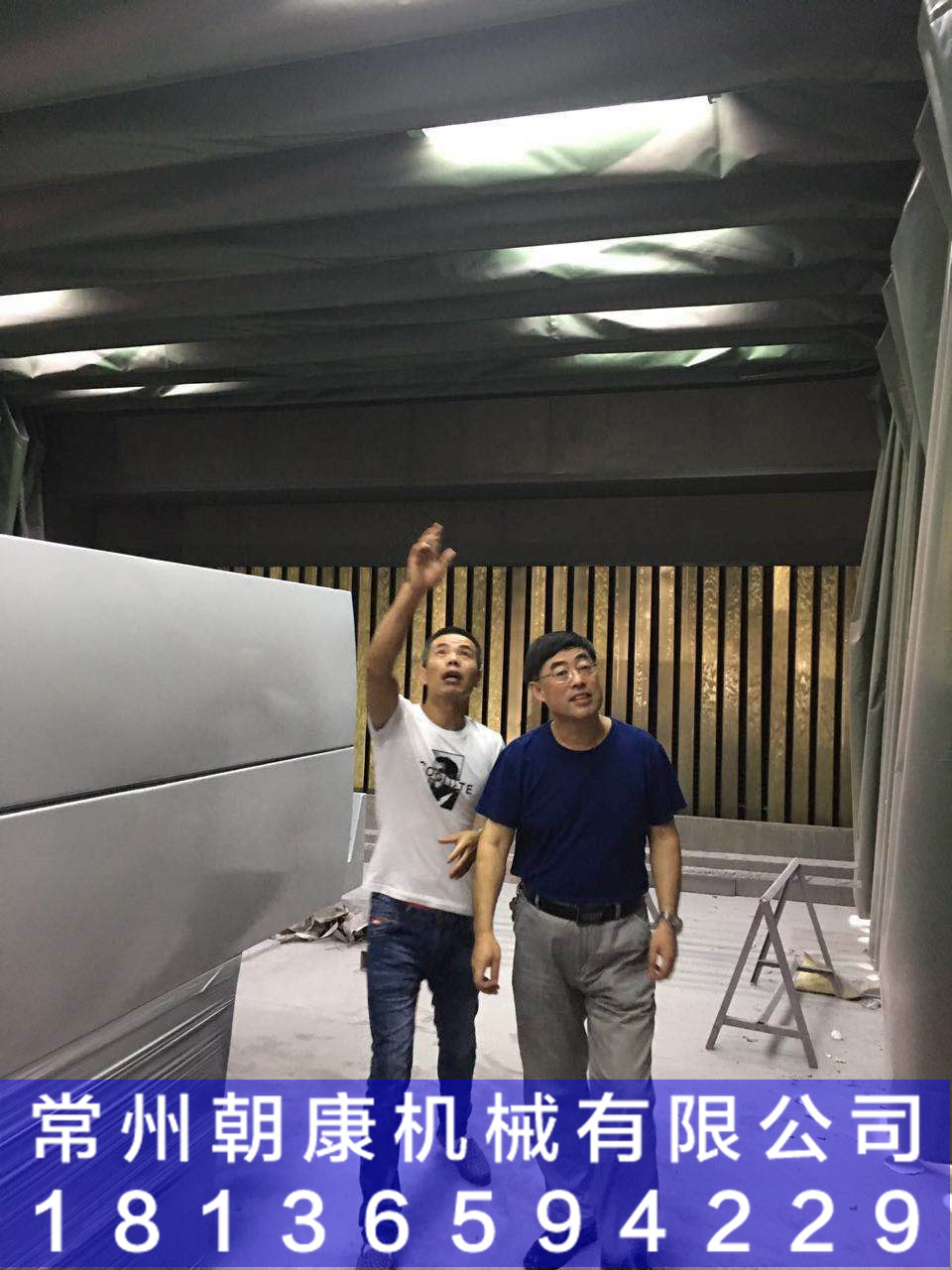 新鮮空氣由噴漆室正面吸入噴漆作業區,噴漆時氣流均勻地將工件包圍,作業區斷面風速為0.5-0.9m/s,使過噴的漆霧不致飛濺,噴漆車間形成負壓狀態,保證過噴漆霧不會飛散到噴漆室范圍以外。過噴漆霧在負壓的作用下吸入油膜漆霧凈化機,先經過二道流動油膜的截附,少量的漆霧再經過油器分離器的分離后達到國家標準排放,漆霧祛除率可達95%。此時室體內的有害物質遠遠低于國家工業企業衛生標準。
